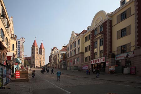 Nach einem sehr guten Frühstück und einer Nacht mit tiefem erholsamem Schlaf ging es am 5. Tag los Richtung Altstadt. Der Plan war mit dem Bus zu fahren. Um es gleich zu sagen, der Plan scheiterte, zwar konnten wir den Bus finden und der Fahrer ließ uns sogar kostenlos mit fahren (Er hatte wohl keine Lust auf Diskussionen) leider ging es in die falsche Richtung. Als wir das merkten stiegen wir natürlich sofort aus, leider gab es keinen Bus der gleichen Linie zurück. Erschwerender Weise kam hinzu, dass wir keine Ahnung hatten wo wir waren. Also doch wieder Taxi! Diesmal bestanden wir auf dem Taxameter, erst wollte der Fahrer nicht, als wir die Türen wieder auf machten ging es doch. Und... siehe Da die Fahrt kostete nur noch 25 Yuan (3 Euro) geht doch. Am Bahnhof angekommen begann unsere Exkursion in das deutsche Tsingtau. Beeindruckend ist der große Kontrast zwischen den neuen und teils sehr modernen Gebäuden und den zahllosen deutschen Bauten aus der Kolonialzeit. Wir kamen aus dem Fotografieren gar nicht mehr raus. Entlang des Ufers am kleinen Hafen fanden sich zahlreiche teils wunderschön restaurierte Gebäude aus deutscher Zeit. Dann ging es Richtung Altstadt am Internationalen Club (Deutsches Haus) vorbei leicht Berg auf zur evangelischen Kirche hoch. Leider war diese nicht geöffnet, so dass wir eine kleine Pause auf dem Platz vor der Kirche einlegten. Mit uns fanden sich massenhaft Brautpaare vor der Kirche die von Fotografen in immer neue Posen gestellt wurden. Anscheinend gibt es hier Massenhochzeiten. Während dieser Pause hatten wir uns köstlich mit einem Amerikaner, der Englischlehrer in Shanghai war, unterhalten. Er hat sich auf das übelste über die chinesischen Taxifahrer ausgelassen. Seine Meinung über diese Berufsgruppe war wenig schmeichelhaft und das Wort fu......... chinese oder Motherfu....... ist bestimmt 20-mal gefallen und wir musste uns mit dem Lachen echt zurückhalten.